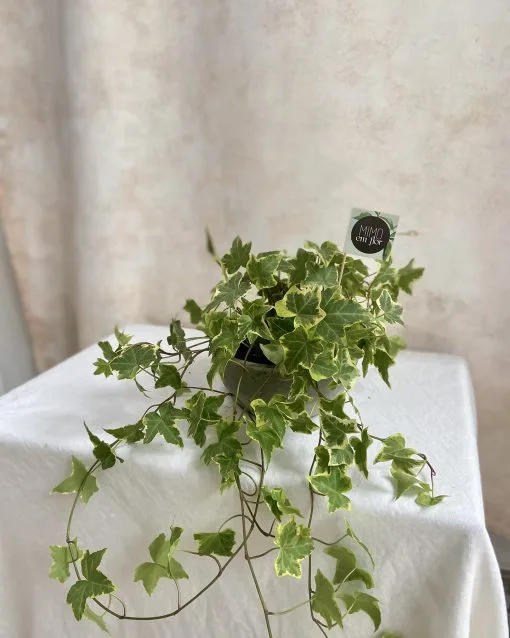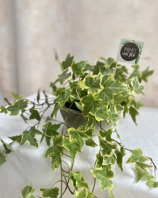Vaso de cimento queimado com hera.