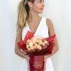 Um buquê clássico de cravina e rosa champanhe com rabo de gato rosado – uma espécie superdelicada – na nossa box vinho. Um encanto a parte!