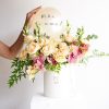 Box M marfim com arranjo champanhe e pêssego e balão personalizado (mais tamanhos disponíveis)