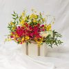 Flores + doces finos: a combinação perfeita para presentear em ocasiões especiais. Este modelo, com arranjo vibrante de gloriosas e orquídeas chuva-de-ouro, vem com 1 caixa de 6 trufas da Carmella Patisserie.
