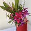 Arranjo em pink, fúscia e verde com orquídeas.