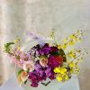 Bolsa Redonda com orquídeas, boca-de-leão, dianthus e mini antúrio.