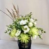 Em branco e verde, com anastácia, folhagens, e toque seco. Boa opção para um presente masculino.