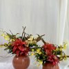 Medida dos vasos (sem arranjo): o maior, 17,5cm altura x 20,5 diâmetro; o menor, 14cm altura x 16,5cm altura